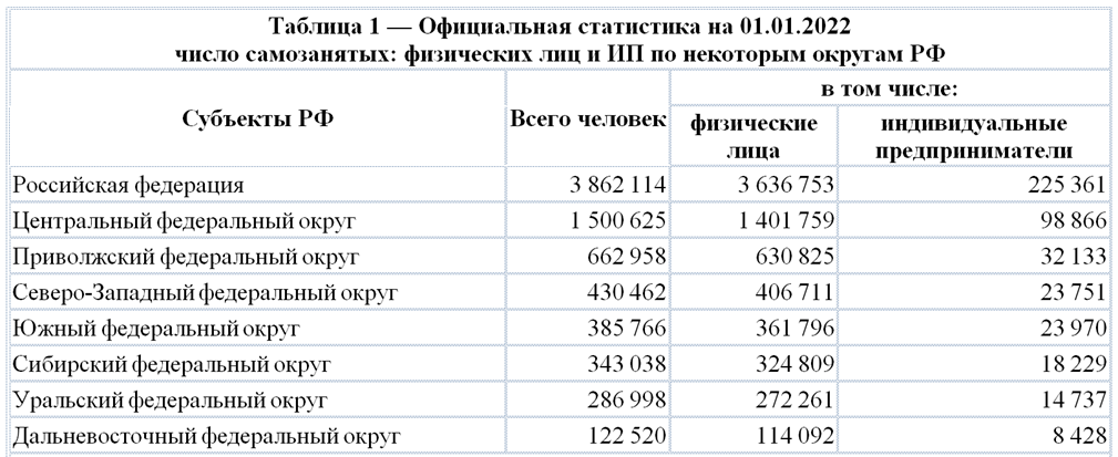 Статистика в цифрах о самозанятых и об индивидуальных предпринимателях