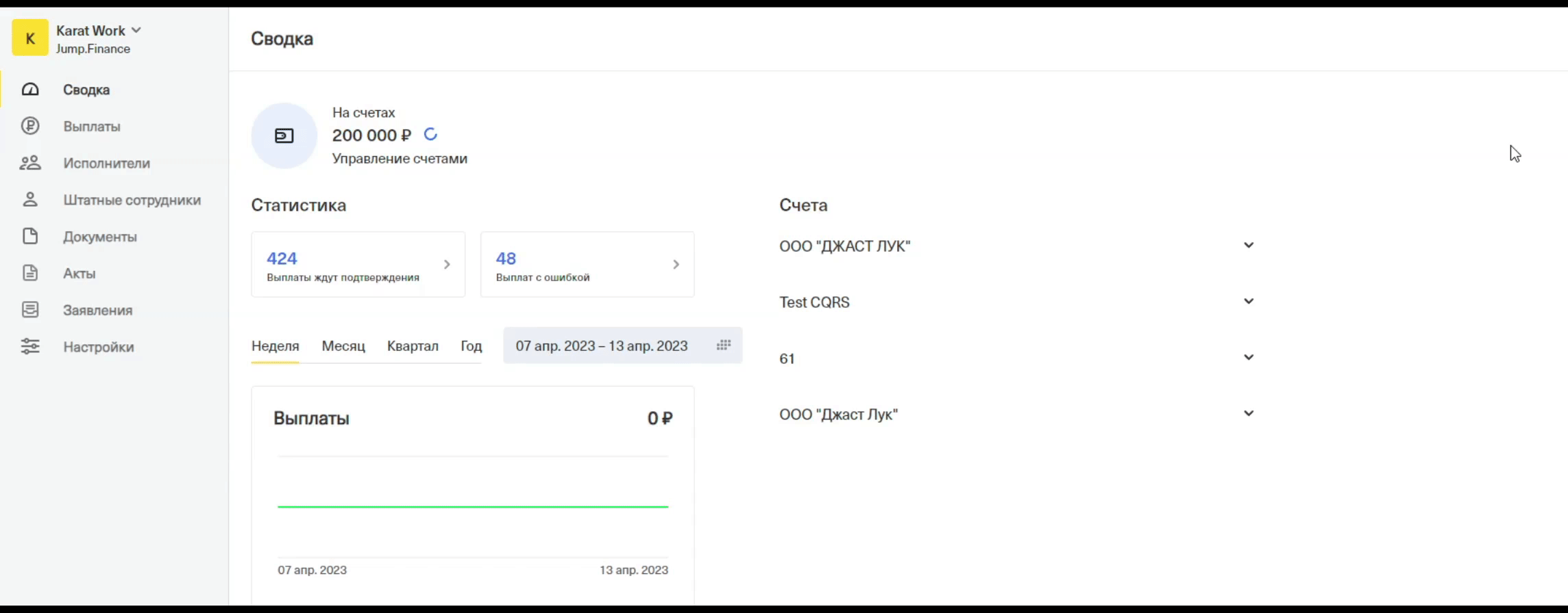 - Для отправки выплаты необходимо подписать акт с двух сторон, после чего выплата уйдет в банк на оплату автоматически.