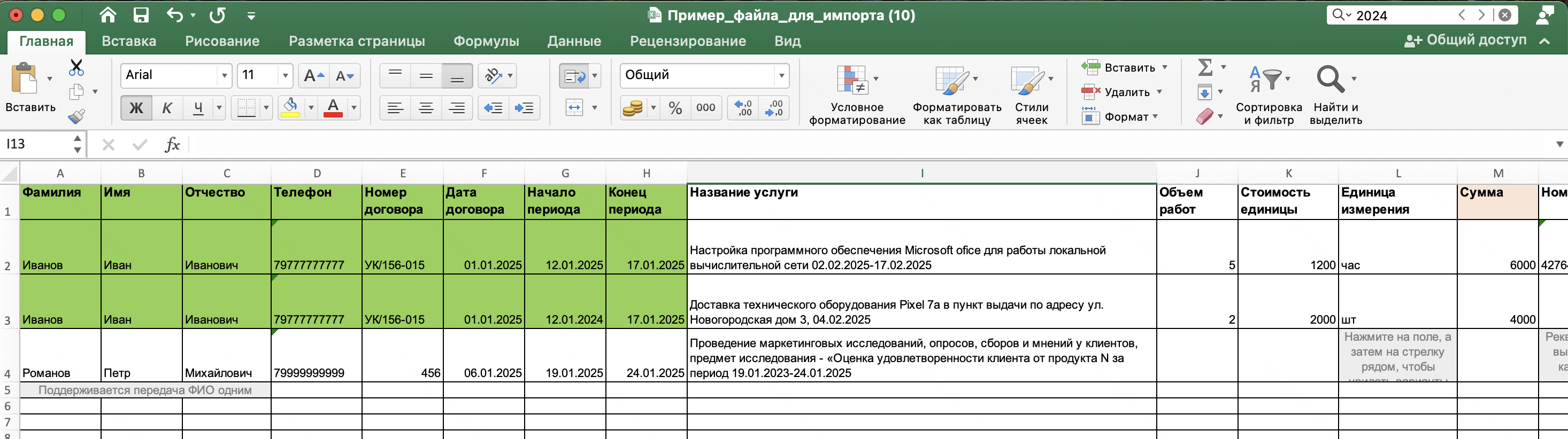 В данном примере услуги Иванова Ивана Ивановича объединятся в один акт, а услуга и акт для Романова Петра Михайловича пройдёт как при обычном импорте выплат