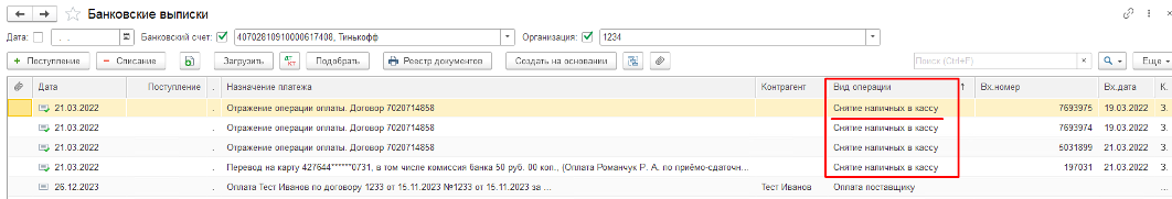 2. Чтобы выписка обработалась корректно в разделе “Списание” в настройках модуля, необходимо установить “Вид списания при сопоставлении” равный виду операции в банковской выписке. В нашем случае это “Снятие наличных в кассу” (вид операции может быть другой)