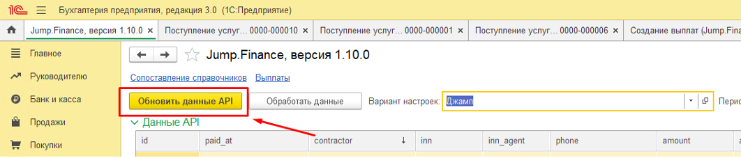 5. После этого требуется нажать кнопку “Обновить данные API”