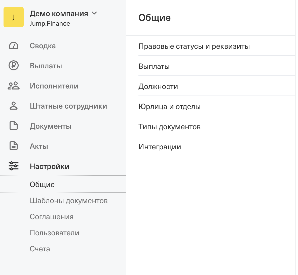 В данном разделе вы можете указать какие правовые статусы могут принимать исполнители, а также на какие типы реквизитов возможен вывод средств.