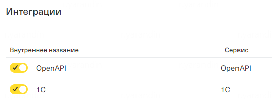 В данном разделе вы можете сгенерировать ключи для интеграции 1С и OpenAPI.