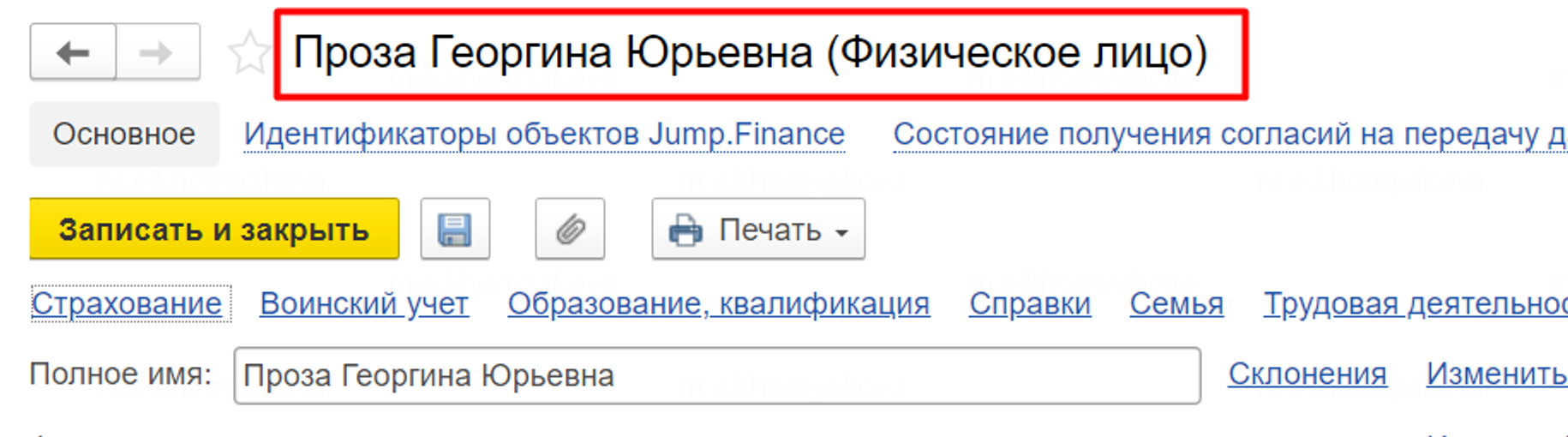 Изменить данные в карточке сотрудника в 1С и нажать "Записать и закрыть"
