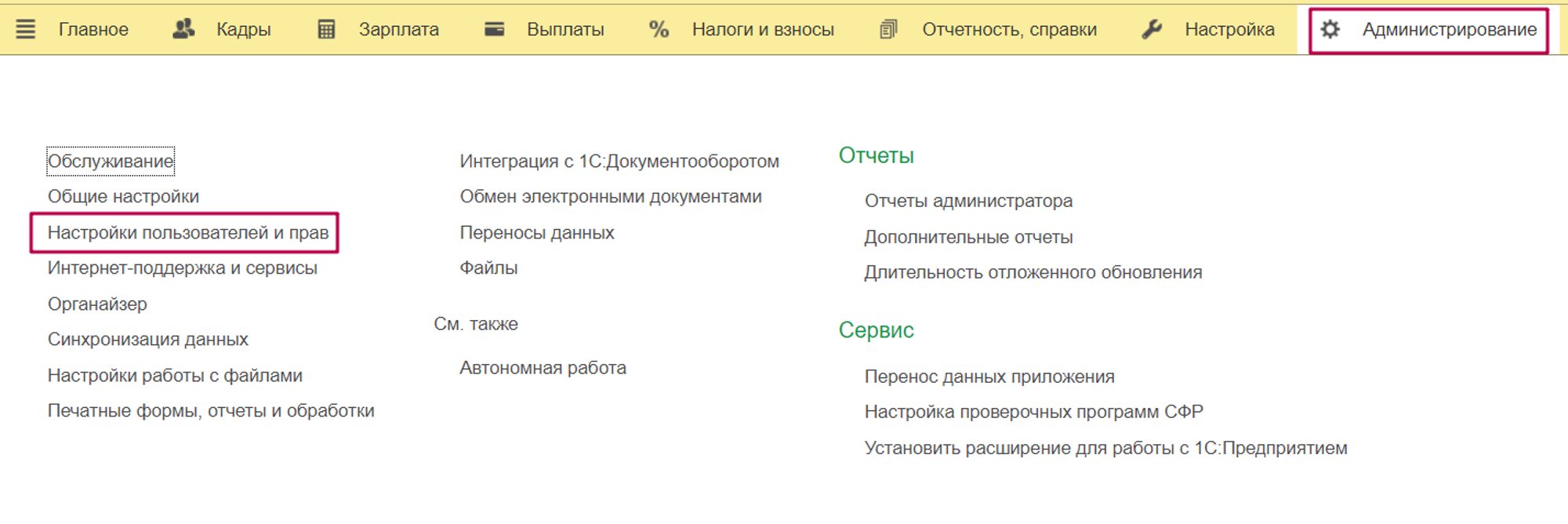 Перейти в "Администрирование/Настройки пользователей и прав"