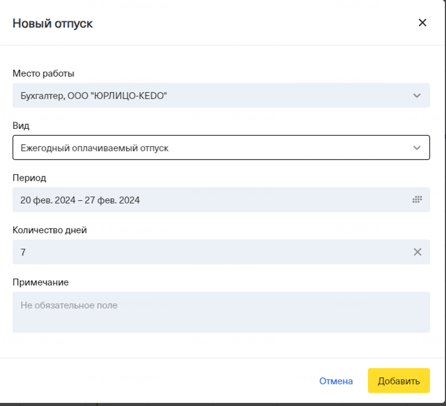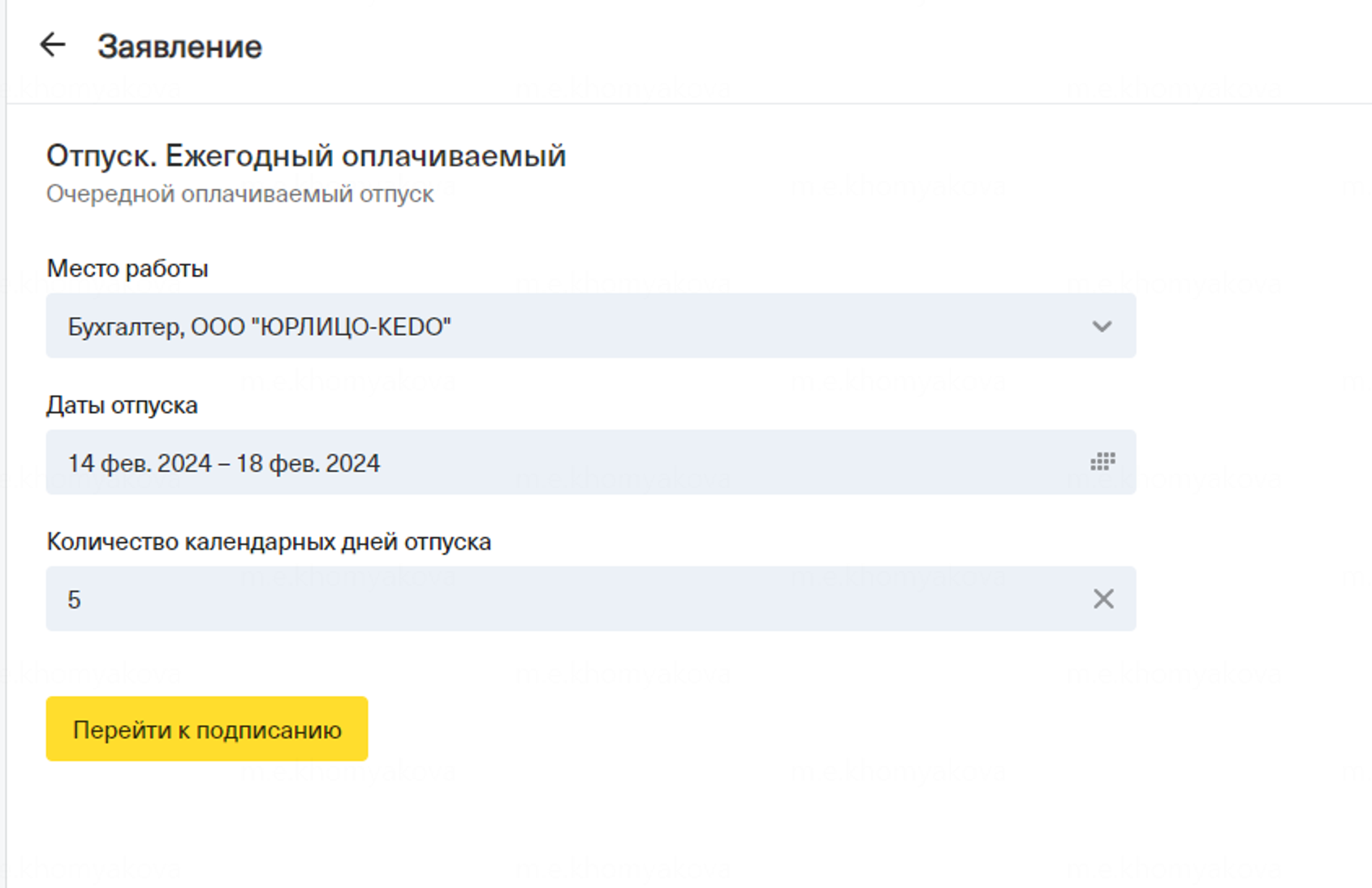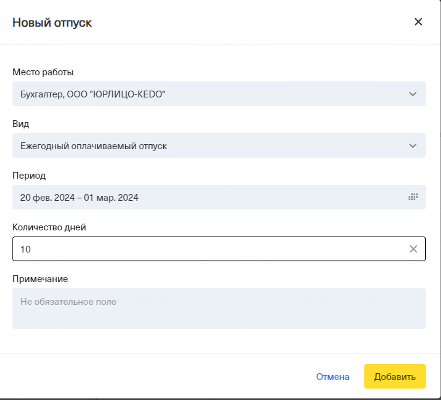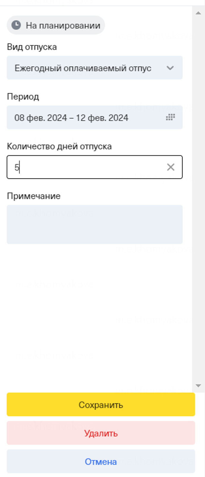 Когда сотрудник будет менять в форме количество дней, даты также будут автоматически сдвигаться от начало отпуска