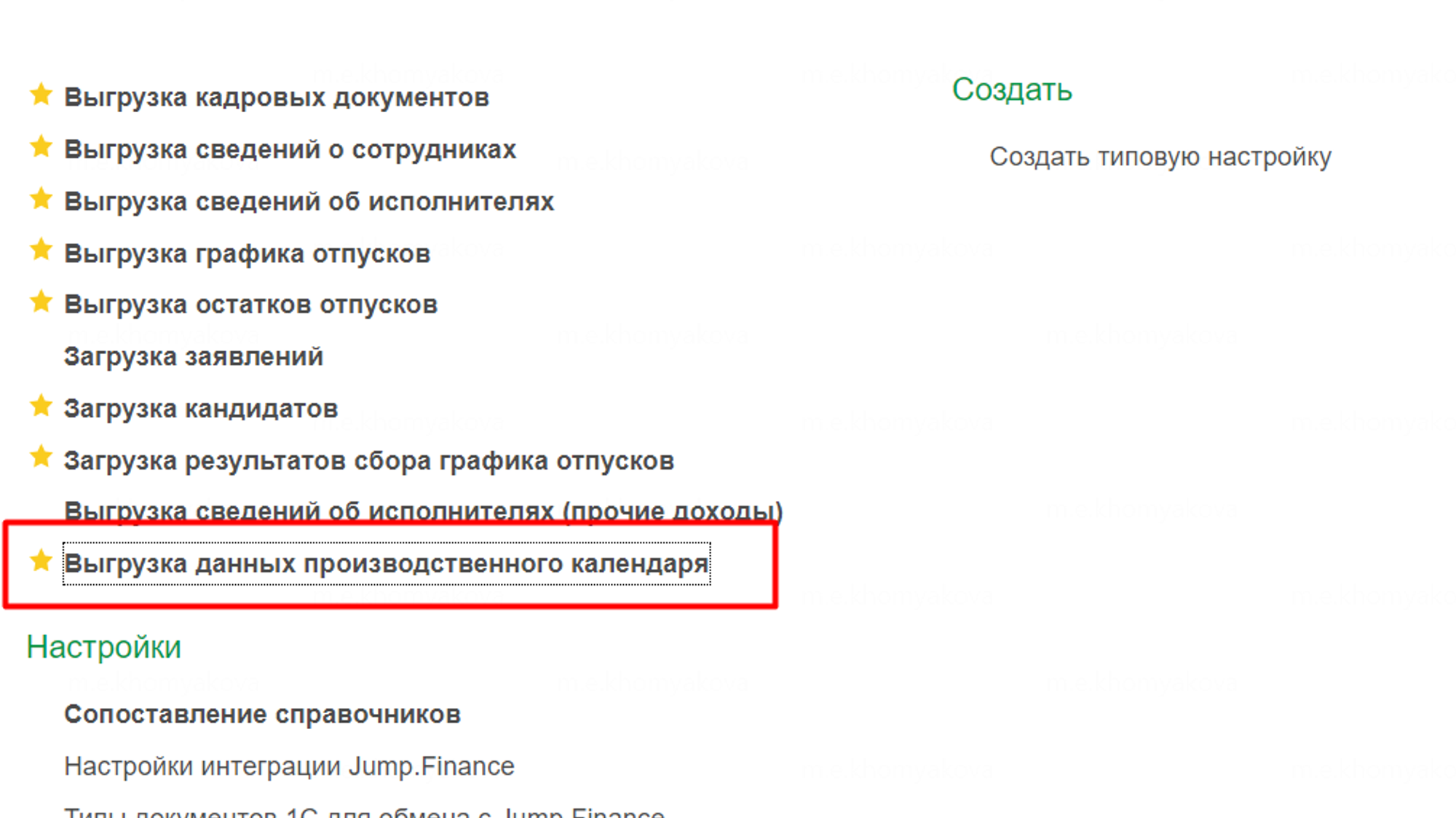 Далее переходите в сам модуль и выбираете “Выгрузка данных производственного календаря”