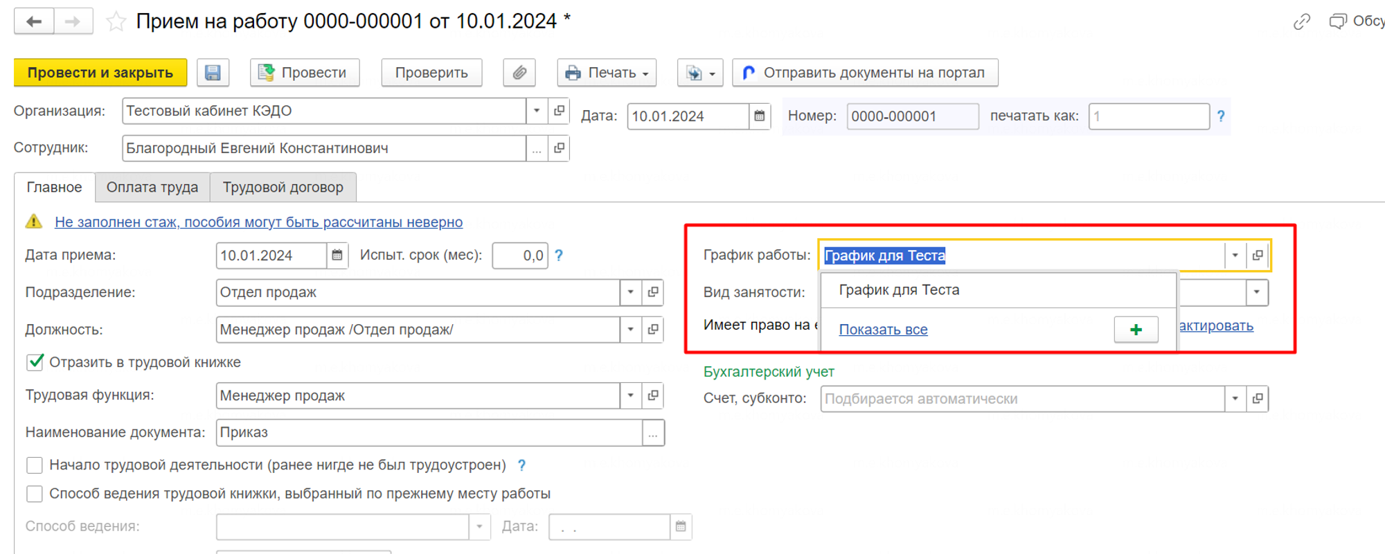 Когда вы принимаете сотрудника на работу, вы указываете его график работы