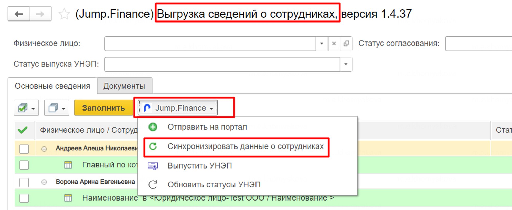 Обратите внимание, что данные можно синхронизировать только по всем сотрудникам единовременно