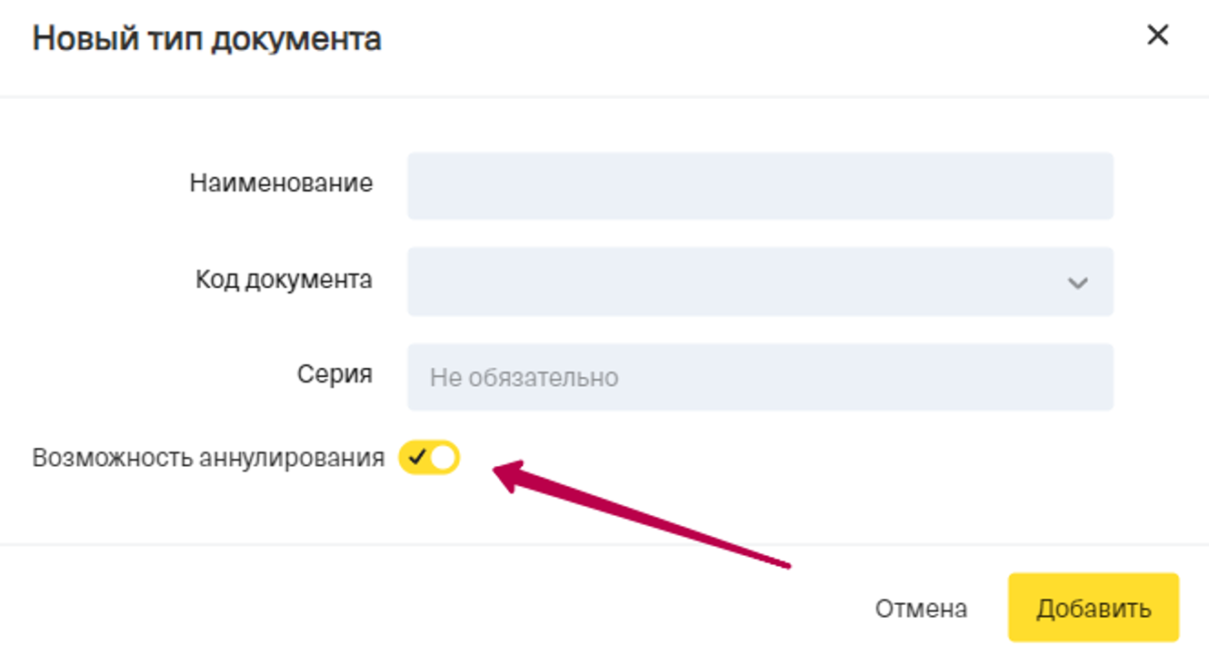 Также при создании нового типа документа мы рекомендуем сразу ставить возможность аннулирования.