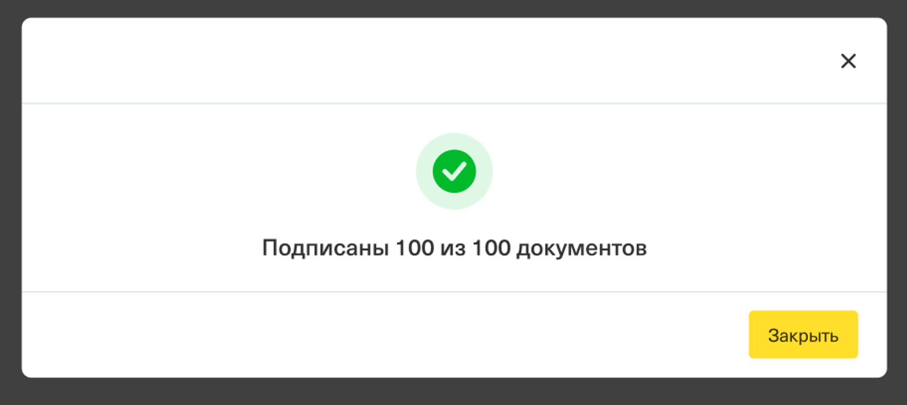 При завершении подписи отображается окно промежуточного результата, где видна информация по количеству документов, которые были подписаны.