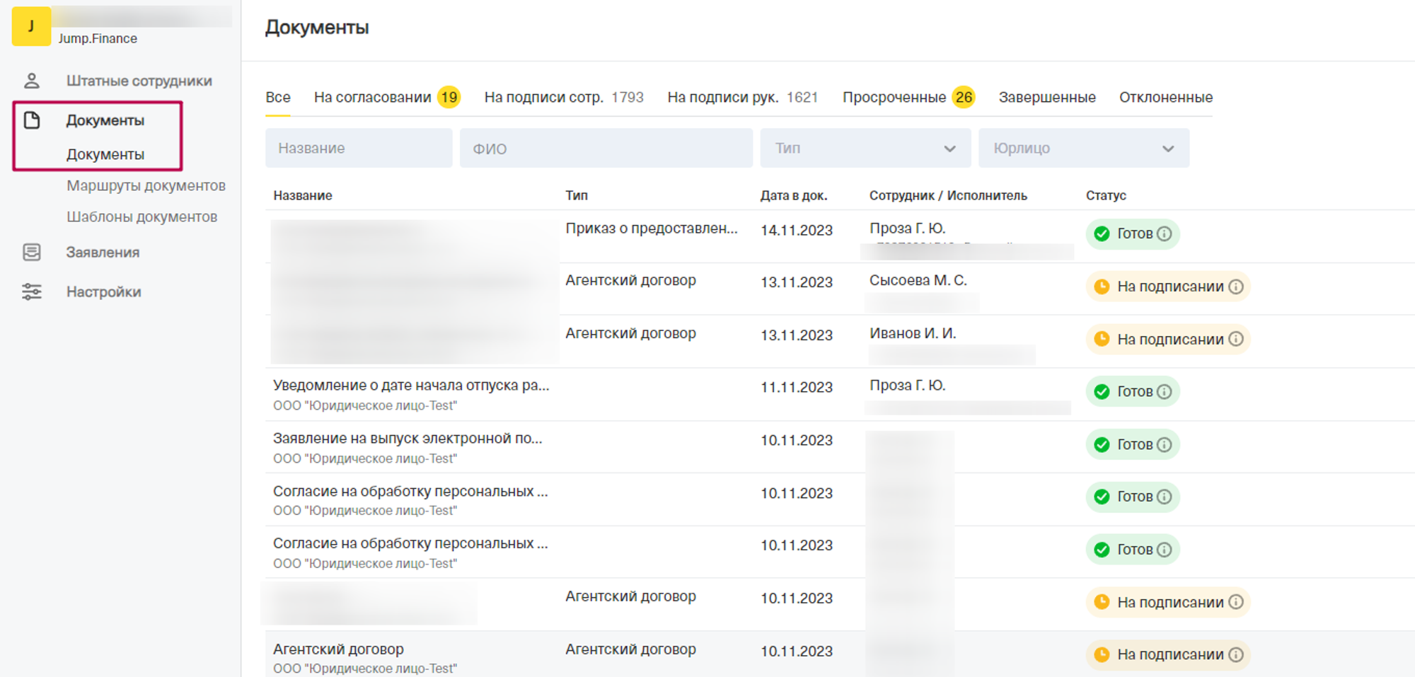 - На подписи сотрудника. Документы, которые находиться на подписи сотрудников.