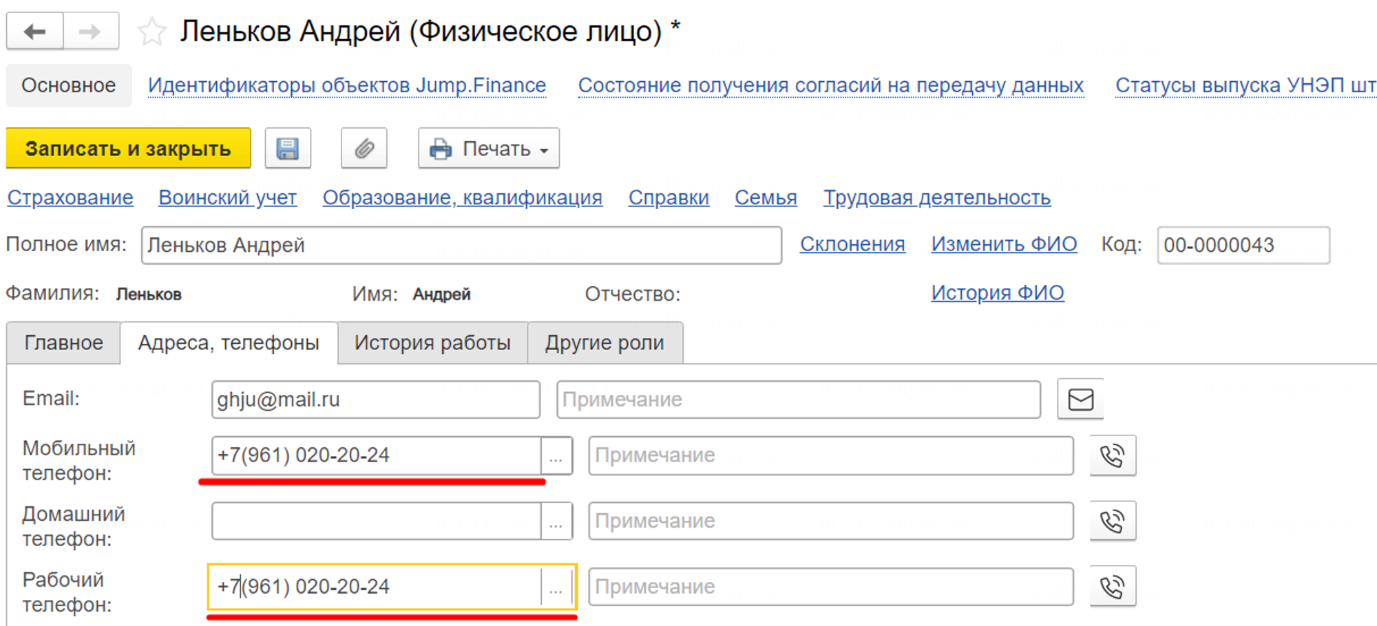 Если при выгрузке сотрудника из модуля вы получаете ошибку “неверный формат номера телефона”,
