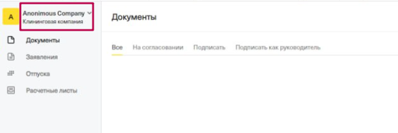 - Выберете ЮЛ сотрудника по которому он получает ошибку (может быть, что в рамках одного кабинета было добавлено несколько юрлиц, например дочерних компаний)