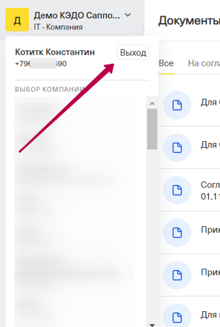 Сотруднику необходимо нажать на “Выход”, в свою очередь кадровому специалисту проверить верно ли введен номер телефона в профиле штатного сотрудника, и исправить на корректный номер. После того как изменения будут сохранены сотрудник сможет войти под верной организацией.