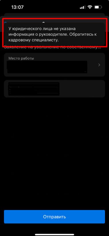 Когда сотрудник получает подобную ошибку при подаче заявления. Вам необходимо: