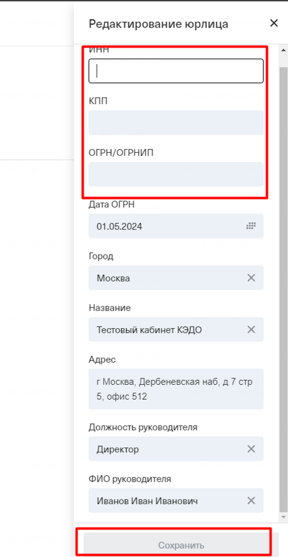 - Внести все данные в пустые строки и нажать "Сохранить”
