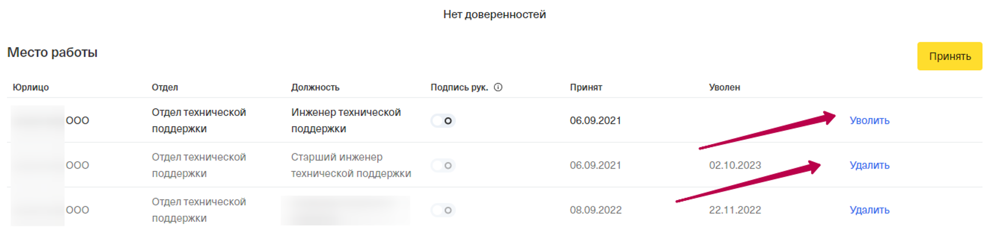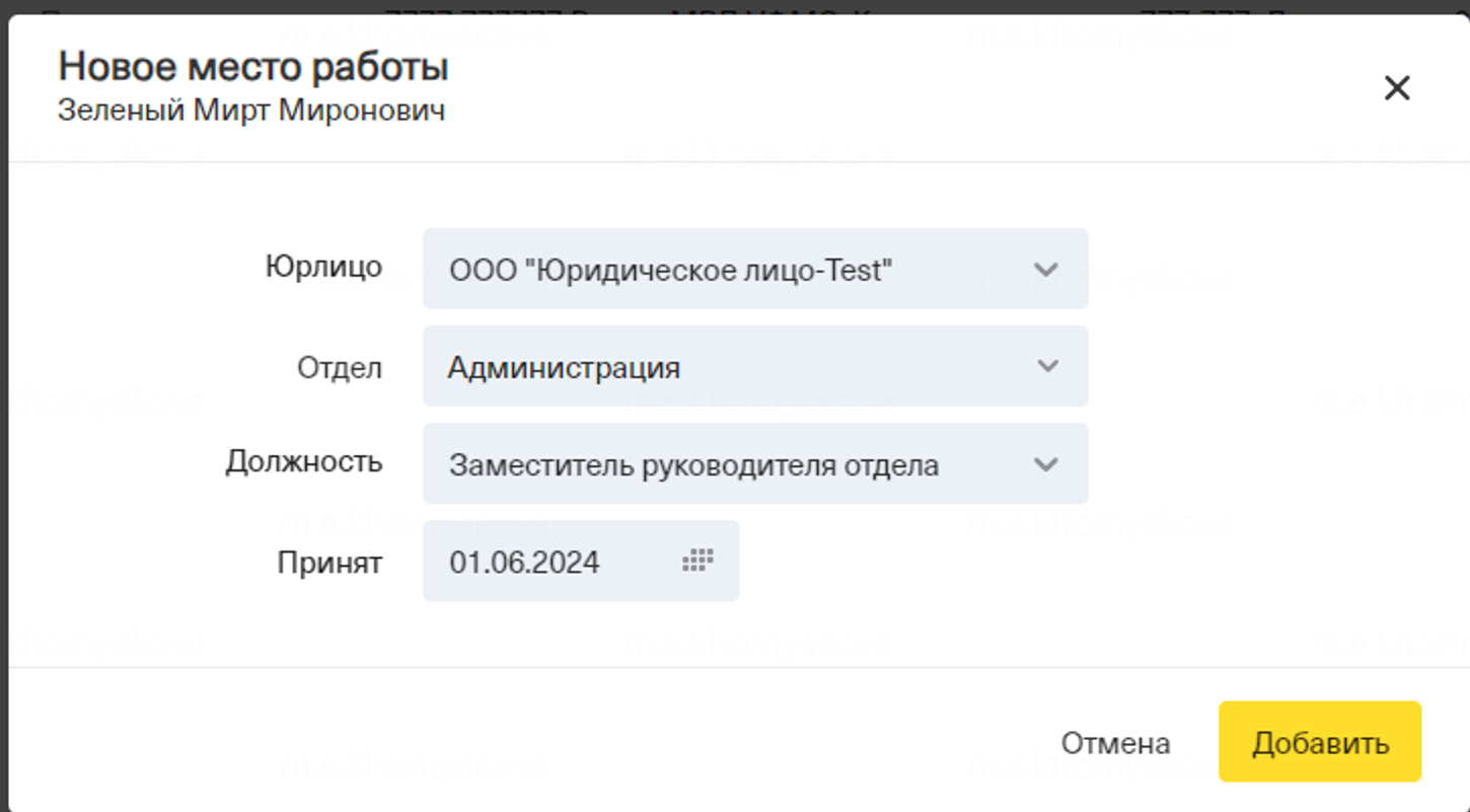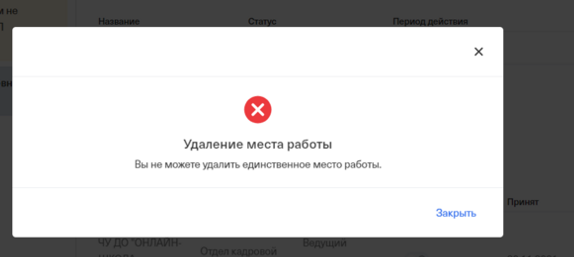 ⚠️ Обращаем ваше внимание, что невозможно удалить единственное место работы у штатного сотрудника. При попытке удалить единственное место работы система выдаст ошибку.