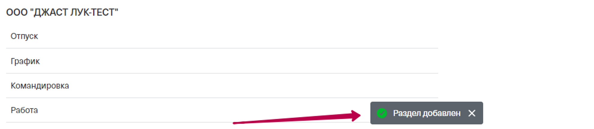 Когда раздел добавлен, внизу странице появиться окно уведомления “Раздел добавлен”.